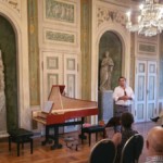 Im 75-Minuten-Konzert folgten wir gern den beiden Künstlern musikalisch in das 17./18. Jahrhundert – mitten in Potsdam, im Festsaal des Palais Lichtenau. Friedrich Wilhelm II. hat es für seine Geliebte Wilhelmine Enke, spätere Gräfin Lichtenau, 1796 in Auftrag gegeben und in Sichtverbindung zu seinem Domizil, dem Marmorpalais im Neuen Garten, bauen lassen. 2011 wurde das Gebäude nach vielen Jahren Leerstand und Verfall von Axel und Tanja Fischer gekauft, saniert und als Haut- und Lasercentrum Potsdam eröffnet.